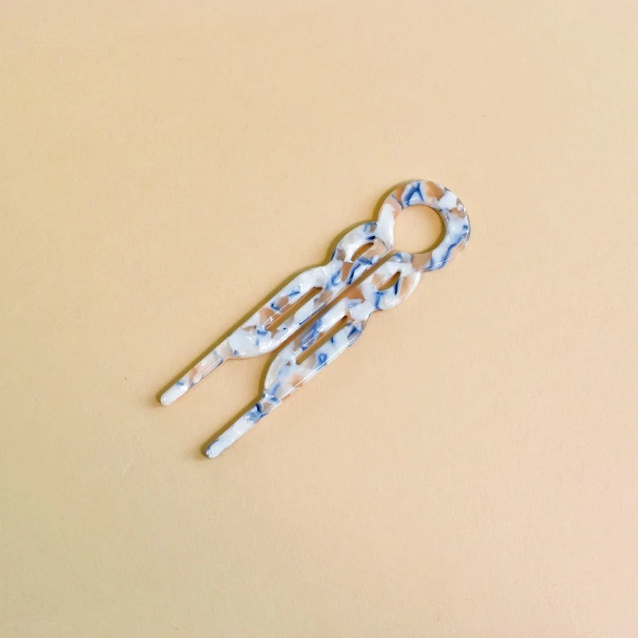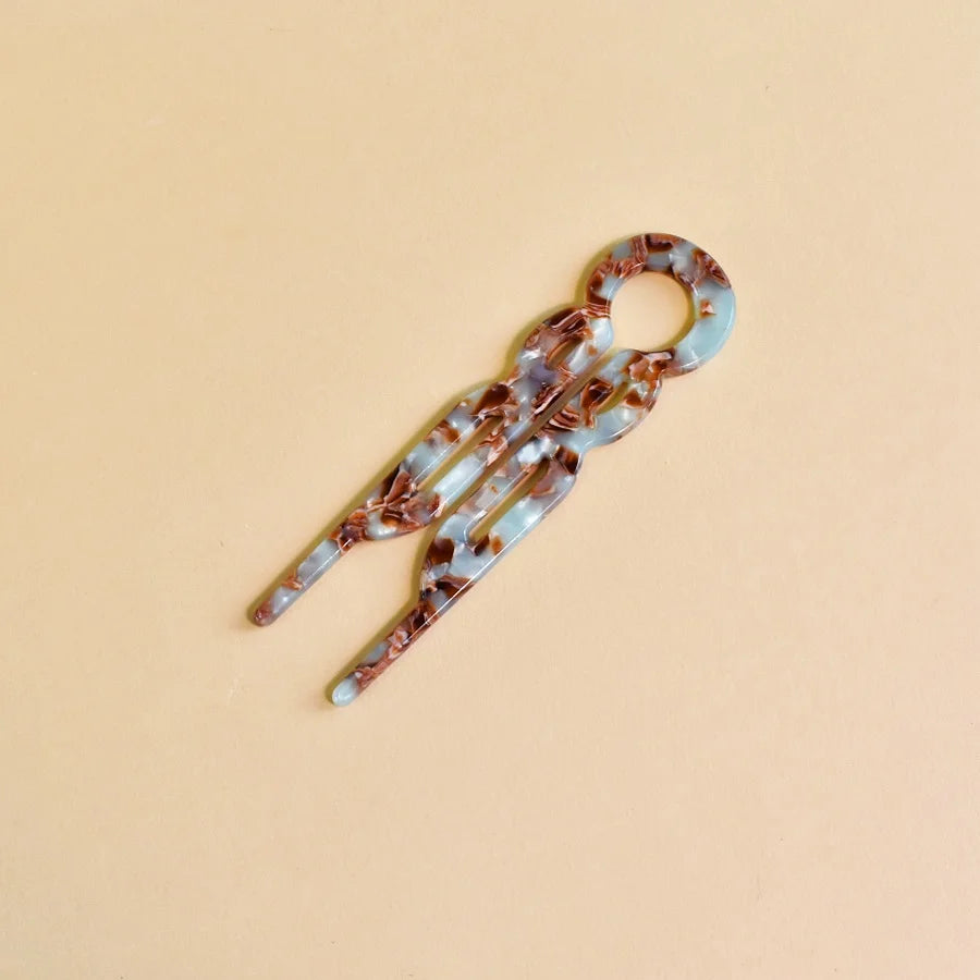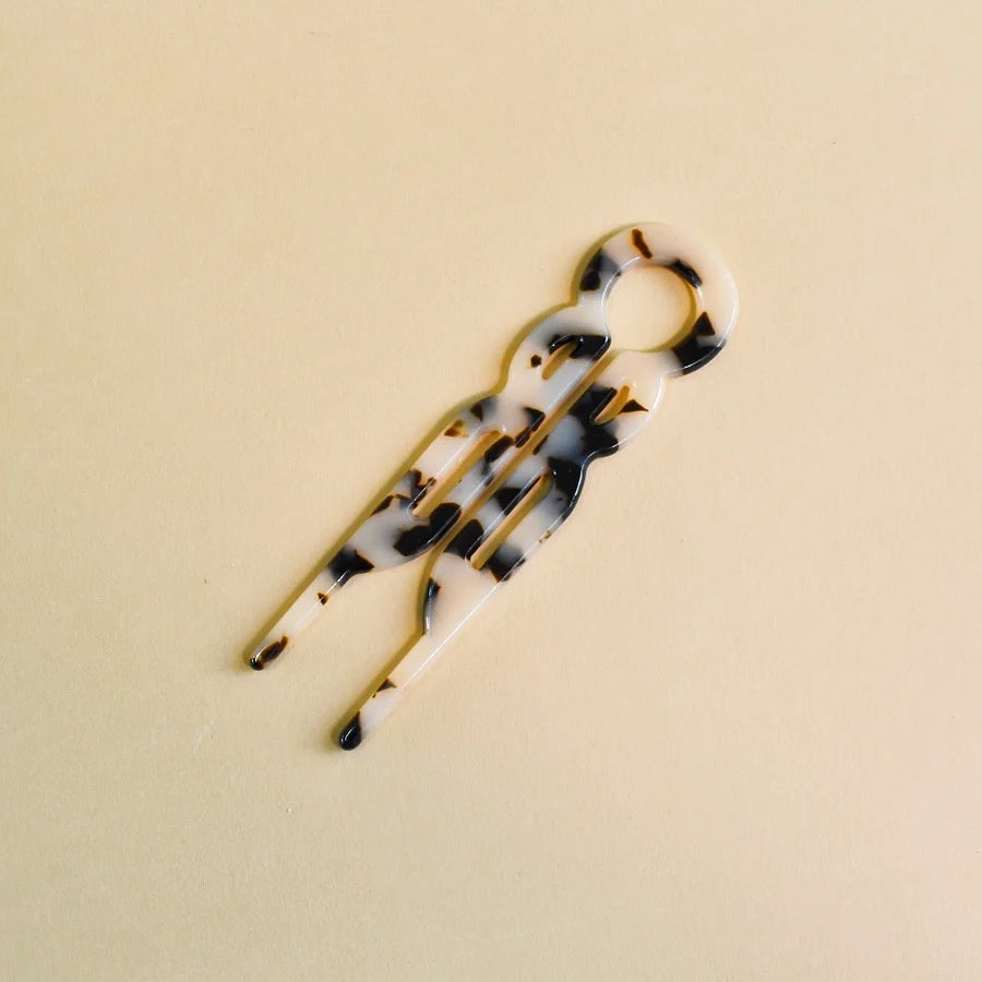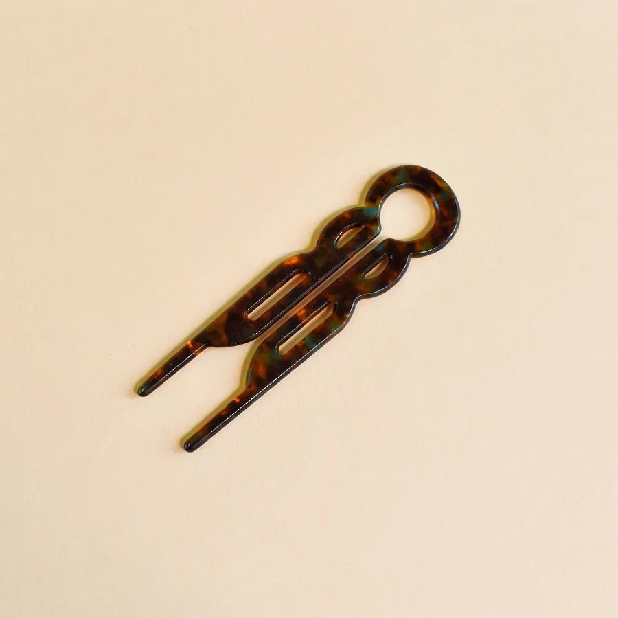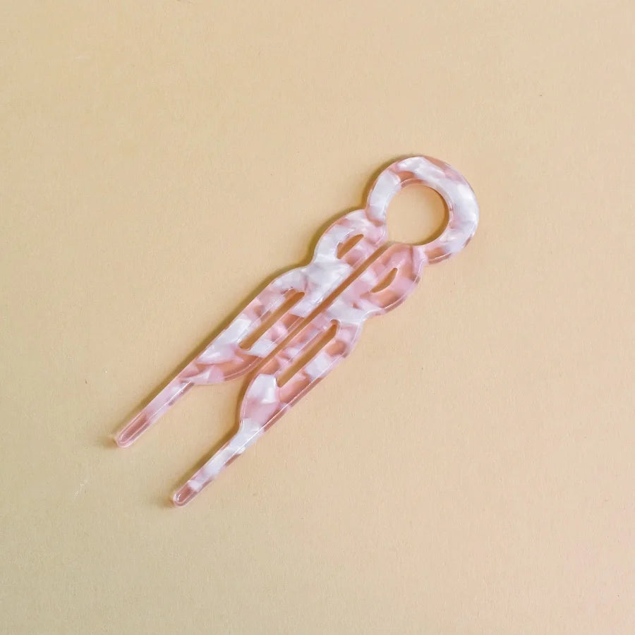 Du skal blot sno eller knytte dit hår, stikke stiften gennem bunden og skubbe den ind, indtil den sidder fast. Ét trin for en elegant og holdbar frisure.