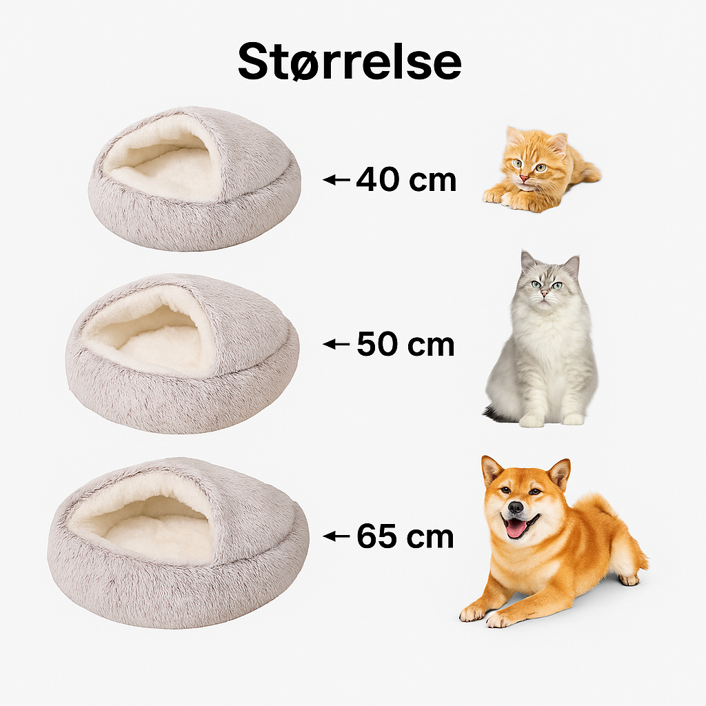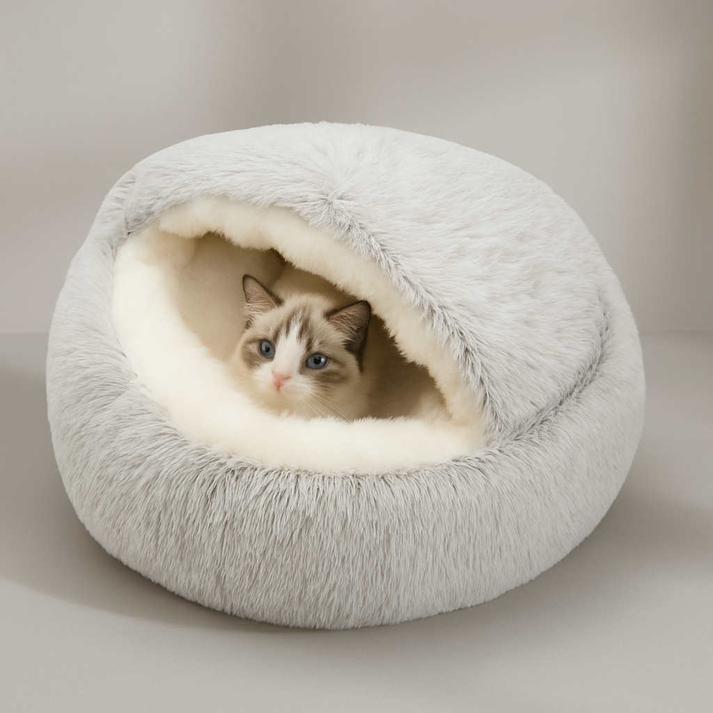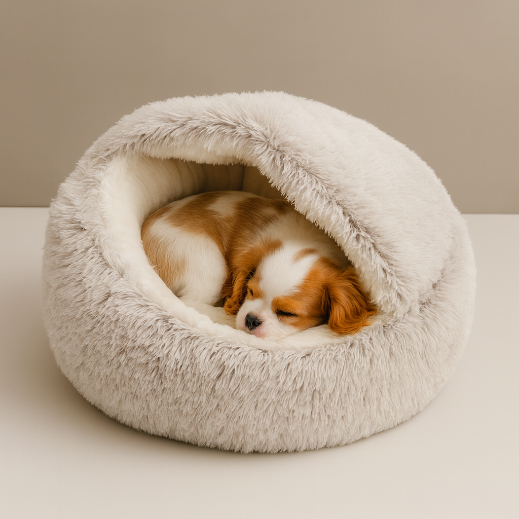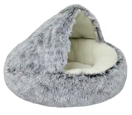 Denne seng er designet med ultrablød kunstpels og en halvlukket hætteform, og den efterligner varmen og trygheden ved en mors omfavnelse. Det er det perfekte tilflugtssted for kæledyr, der føler sig ængstelige under storme, fyrværkeri eller travle dage – og hjælper dem med at slappe af og falde i en fredelig søvn.