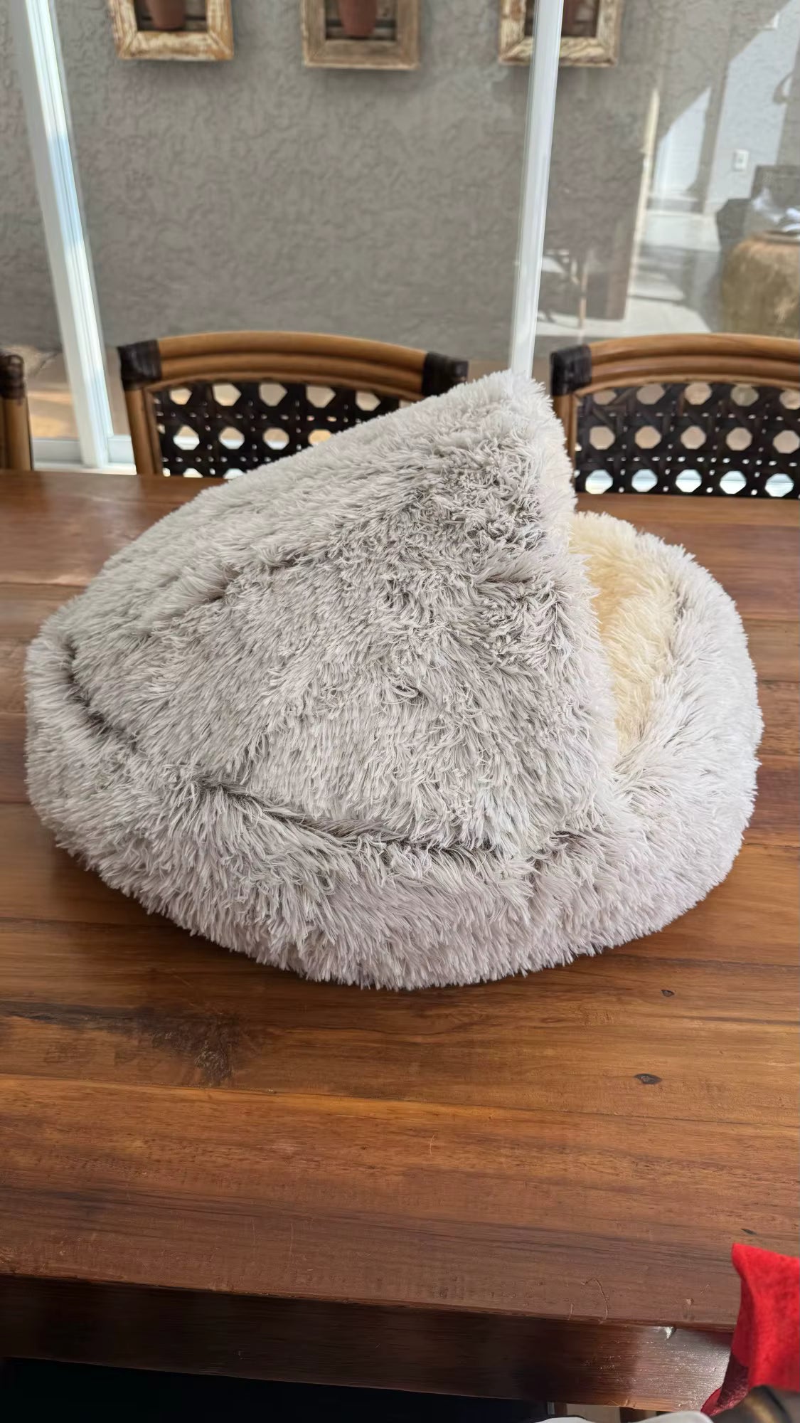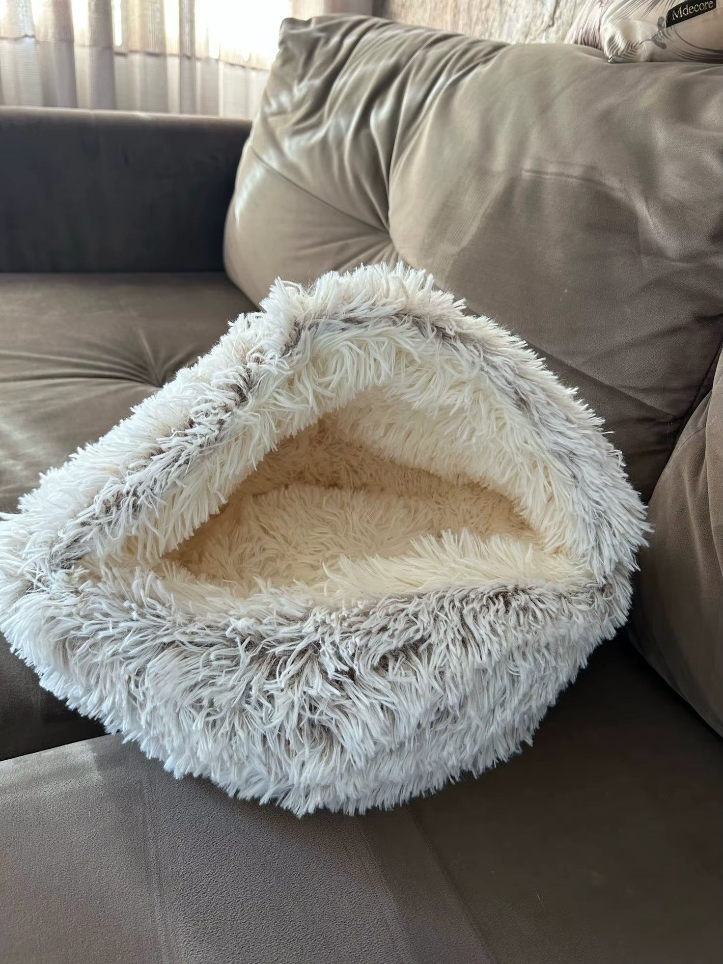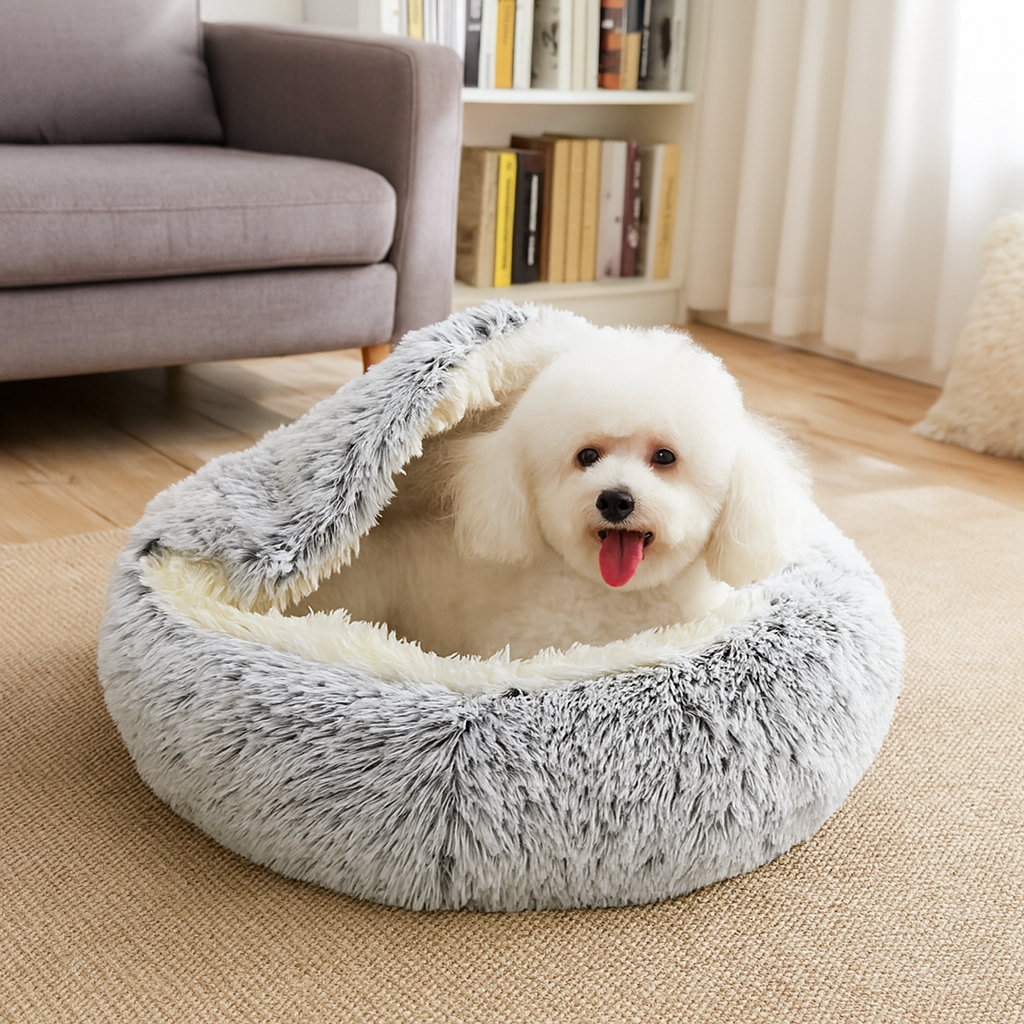 Denne seng er designet med ultrablød kunstpels og en halvlukket hætteform, og den efterligner varmen og trygheden ved en mors omfavnelse. Det er det perfekte tilflugtssted for kæledyr, der føler sig ængstelige under storme, fyrværkeri eller travle dage – og hjælper dem med at slappe af og falde i en fredelig søvn.