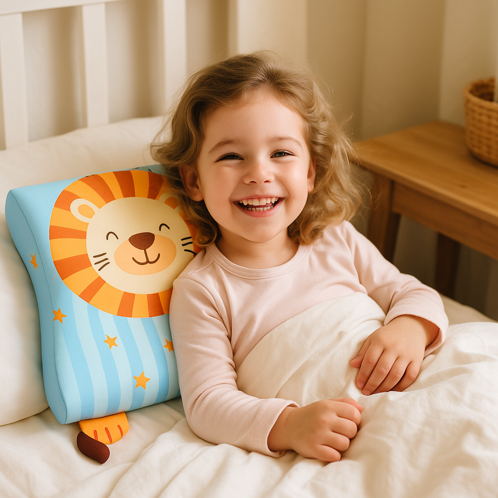 Puden er dimensioneret og tilpasset børn i alderen 3-12 år. Den giver ordentlig støtte til nakke og rygsøjle for børn i vækst, i modsætning til almindelige voksenpuder, der er for store eller faste.