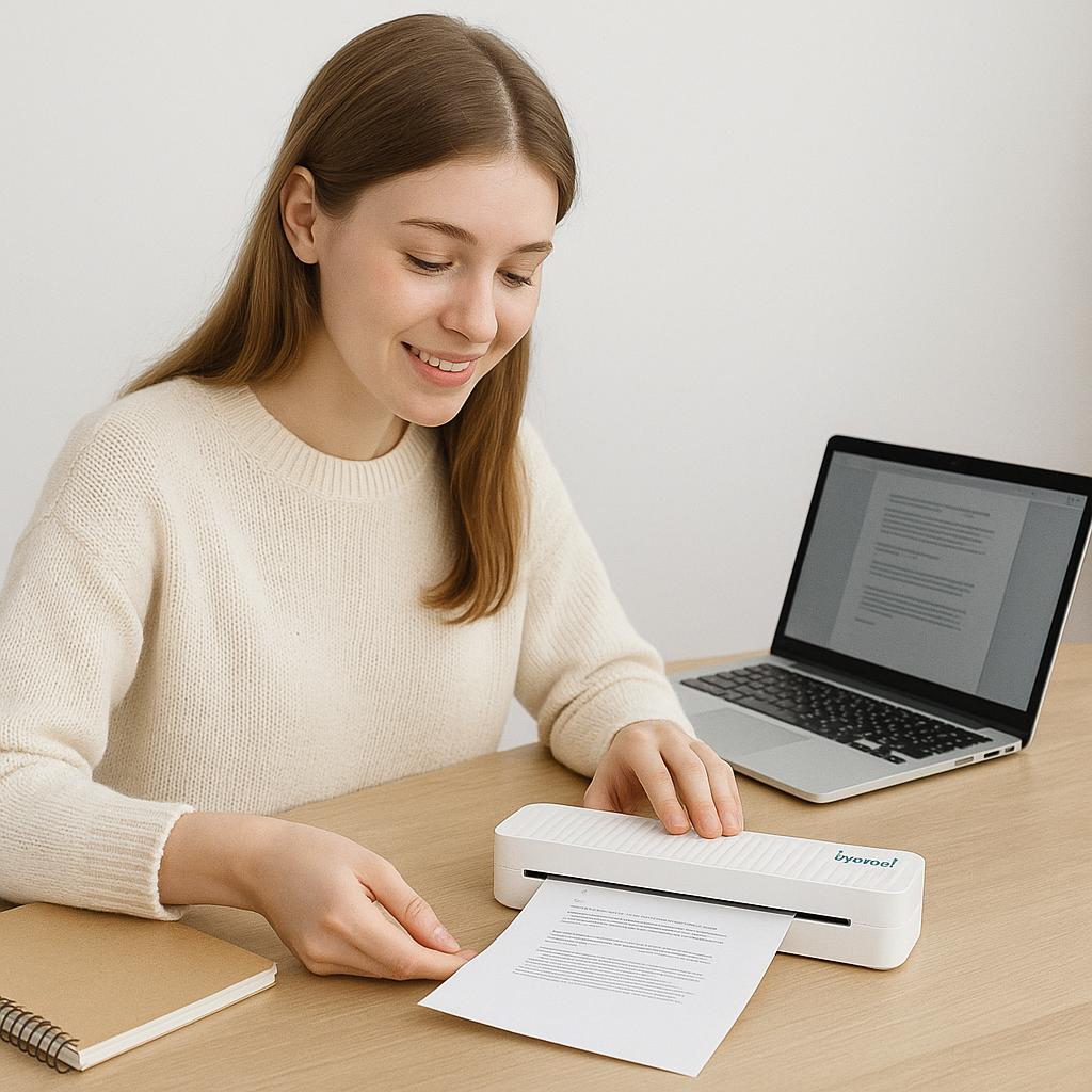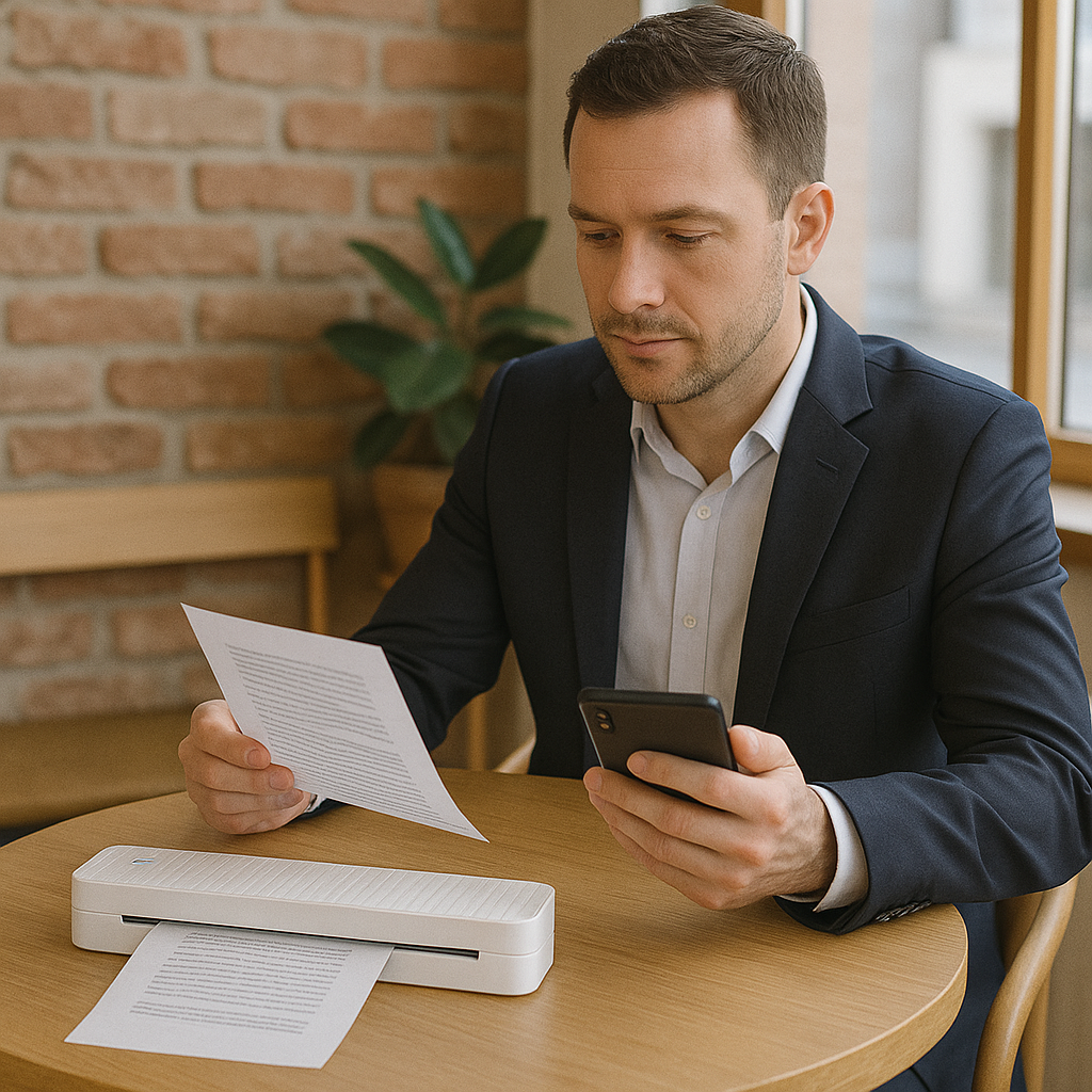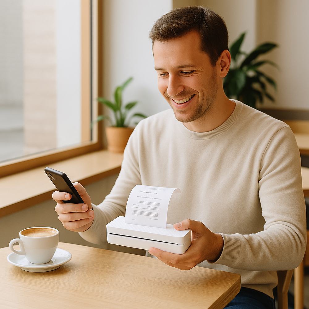 Med LynPrint behøver du ikke at lede efter en printer eller vente, til du er tilbage ved dit skrivebord. Du skal blot tilslutte din telefon via Bluetooth, lægge dit papir i og udskrive med det samme – i din bil, på en café eller mellem møder. Forbliv forberedt og professionel overalt.