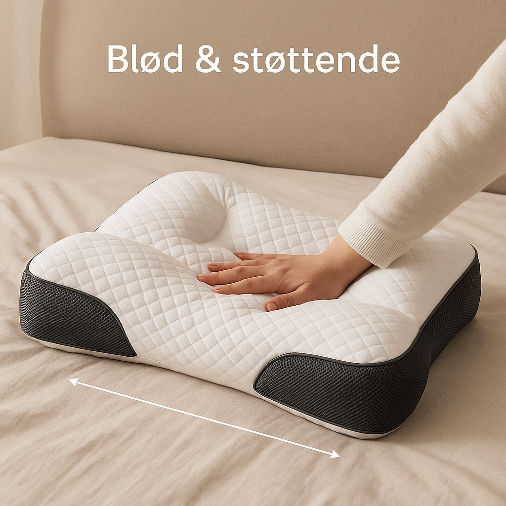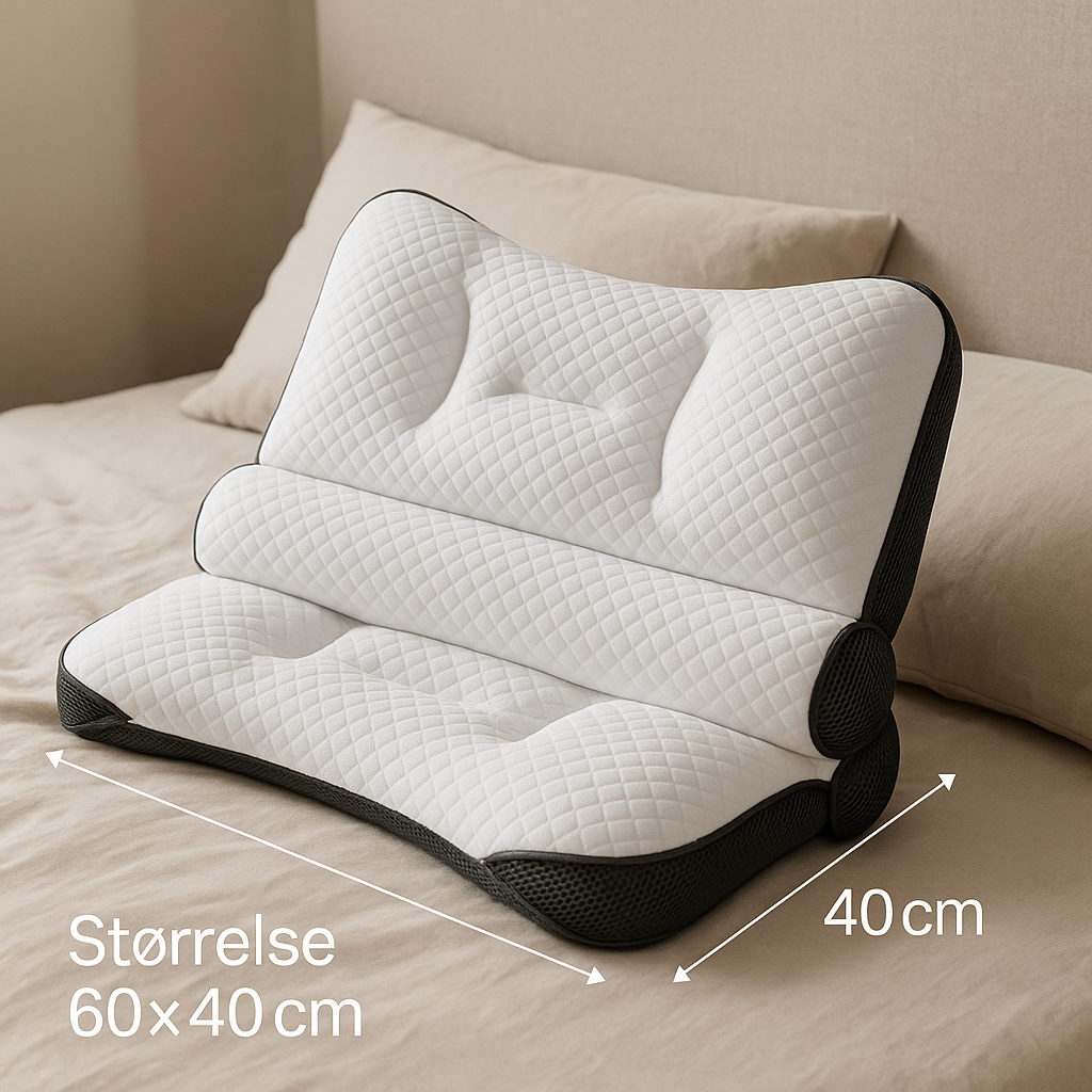 Vores pude er designet med dedikerede støttezoner til hoved, nakke og sidesøvn, plus en ørerille for at aflaste trykket fra sidesoveren. Kombineret med blødt, rebound-mikrofiberfyld og åndbart, kølende stof tilbyder den ergonomisk støtte, som almindelige puder ikke kan give.