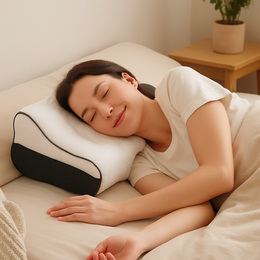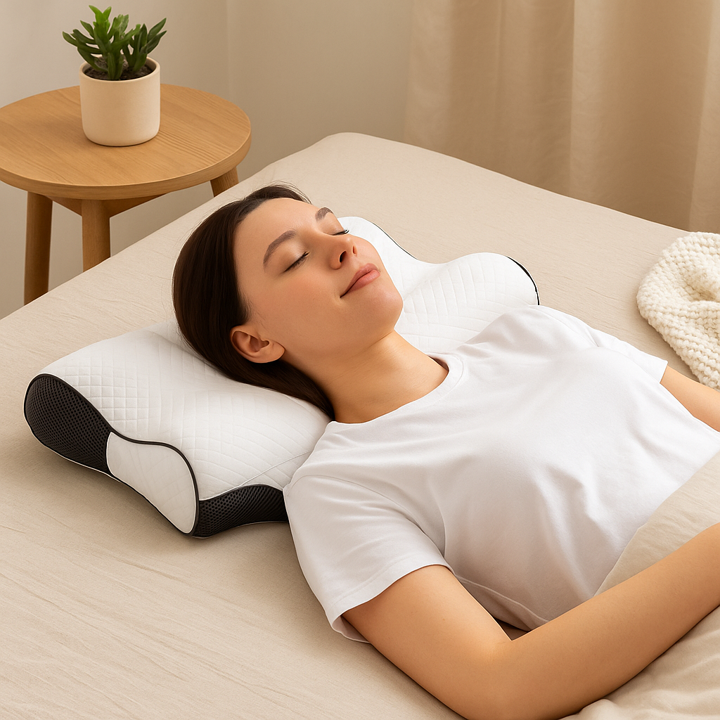 Selvom det ikke er et medicinsk udstyr, er den ergonomiske nakkestøtte og det retningsbestemte trækkraft designet til at aflaste tryk, reducere stivhed og fremme en sundere rygsøjlejustering – mange brugere rapporterer, at de vågner op med færre smerter.