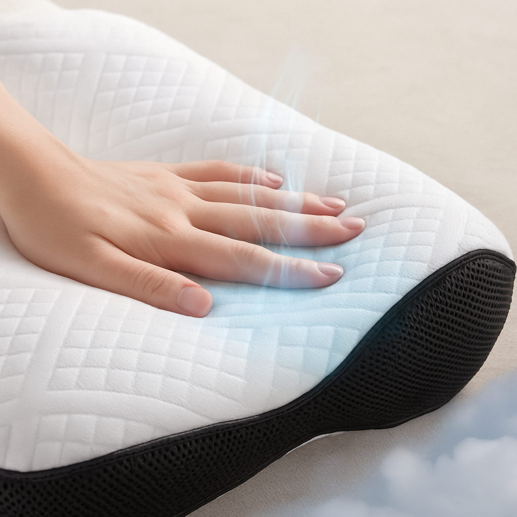 På varme nætter tillader det åndbare, kølende stof luftstrøm, der forhindrer overophedning. Kombineret med komforten i øregangene for sidesovere og afbalanceret støtte i alle positioner, kan du nyde en kølig og trykfri søvn indtil morgenen.